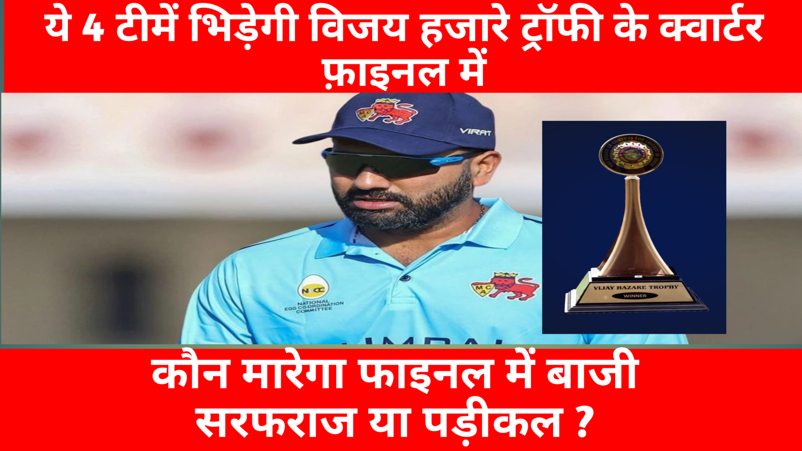 ये 4 टीमें भिड़ेगी विजय हजारे ट्रॉफी के क्वार्टर फाइनल में | सबकी नजर होगी सरफराज और पड़ीकल पे |कौन मारेगा बाजी ?